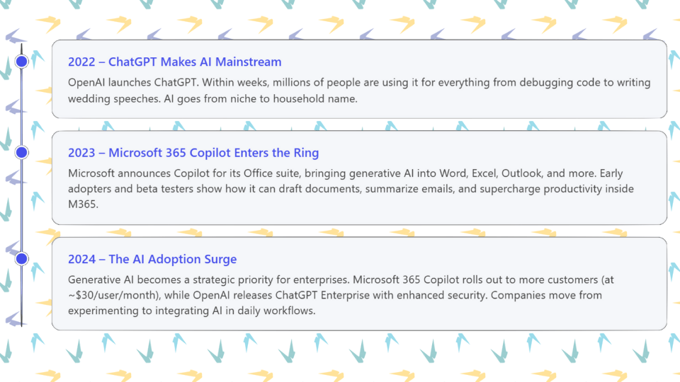 Less than a year after OpenAI’s ChatGPT went viral in late 2022, we started to see employees bring their own AI tools to work. In other words, your employees have likely been experimenting with ChatGPT or similar tools on their own to draft emails, brainstorm ideas, or crunch data. AI has moved from buzzword to boardroom priority faster than we have seen with other new technologies.