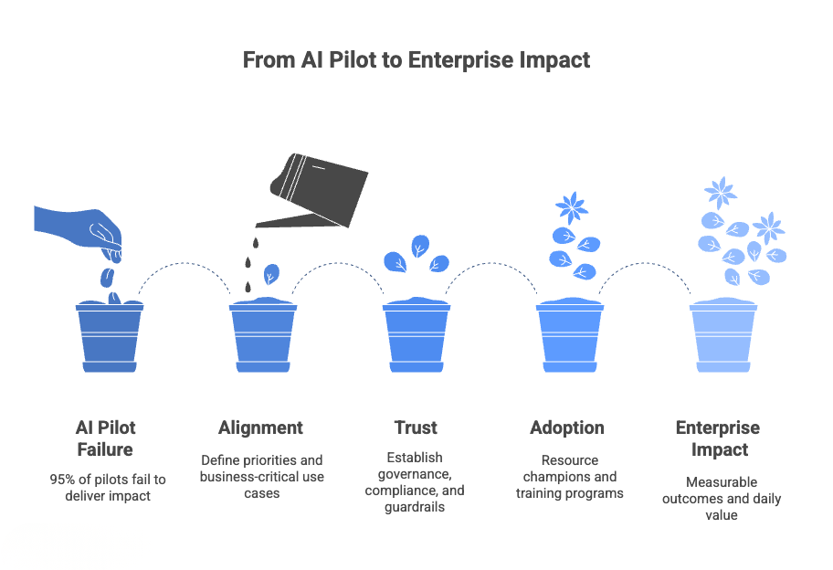 When leaders do this, they create the conditions for Copilot to succeed — and for pilots to graduate into enterprise impact.